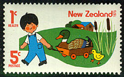 This stamp is from New Zealand, a country where the seasons are opposite to the seasons in Canada and the United States. When we are having fun with snowballs, they are surfing.